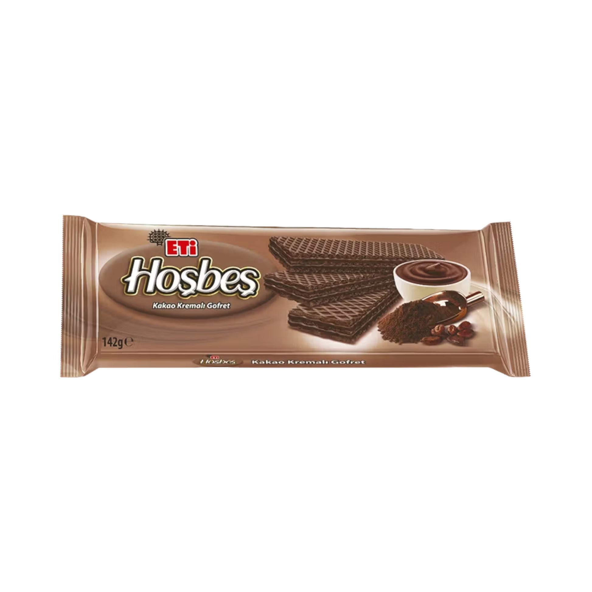Eti Hoşbeş Kakao Kremalı Gofret, serinin çikolata severlere özel versiyonudur: incecik kakaolu gofret yaprakları ile yoğun kakao kreması bir araya gelerek katmanlı ve çıtır bir tat deneyimi sunuyor. Kremada %6,8 yağı azaltılmış kakao tozu kullanılırken gofret yapraklarında da %3,5 kakao tozu yer alıyor; bu sayede her ısırıkta çift katlı bir kakao lezzeti elde ediliyor. Hindistan cevizi yağı ve yağsız süt tozu ile desteklenen krema, ağızda hafifçe eriyen ve tıkanmadan art arda yenebilen o meşhur Hoşbeş dokusunu oluşturuyor.